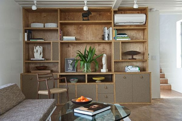 The great thing about this structure is that allowed Stephen to incorporate a lot of leftover materials and supplies he had laying around the courtyard. The result balances the industrial style and the warehouse appearance with the great open space found around the structure. The interior is perfect for an office area and the space is utilized at its maximum potential. There is enough space for a small meeting and also very well equipped so, those who work there have anything they might need at hand. This office continues the residential theme, the house being also made in a non-traditional way.