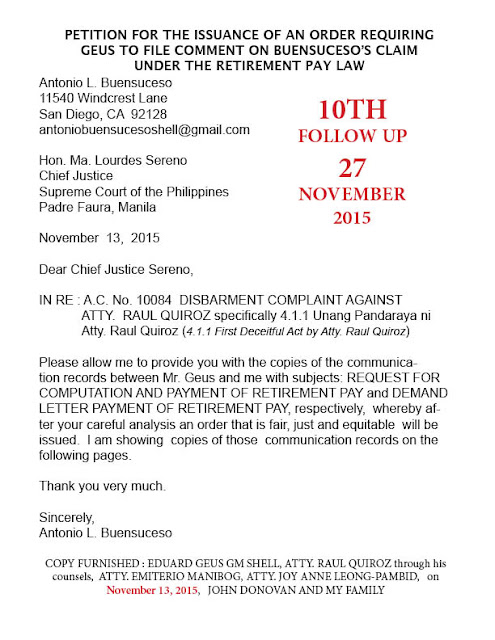 (e) Causing any undue injury to any party (myself, Antonio L. Buensuceso Jr.) including the Government, or giving any private party (PSPC, SHELL) any unwarranted benefits, (NON-PAYMENT OF RETIREMENT PAY) advantage or preference in the discharge of his official administrative (ATTY. THEODORE TE, functions) or judicial functions through manifest partiality, evident bad faith or gross inexcusable negligence. This provision shall apply to officers and employees of offices (Atty. Theodore Te, an officer of one offices of the Supreme Court, the PIO) or government corporations charged with the grant of licenses or permits or other concessions.